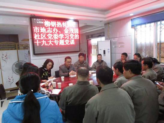 为进一步学习好、宣传好、贯彻好党的十九大精神,广泛动员和发动辖区干部群众深入学习党的十九大精神,11月29日上午,市地方志办联合结对共建单位——金茂园社区和柳钢热轧厂开展题为“新时代,新使命,新思想,新征程:党的十九大精神解读”专题讲座。讲座围绕“新时代,新使命,新思想,新征程:党的十九大精神解读”这一主题,从“明确了新的鲜明主题、提交了新的优秀答卷和标定了新的历史方位”等八个方面,组织党员干部深入浅出的学习了十九大精神。(图文/市方志办党支部)