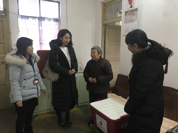 在结对帮扶的社区困难家庭毛阿姨家中,市方志办党支部书记凌琳详细询问了毛阿姨的身体状况及其一家的生活情况,并给毛阿姨一家送去大米、食用油、面条、毯子和年货,让他们提前感受到了春天的温暖。(图文/吴燕玲)