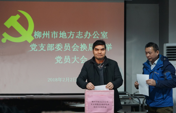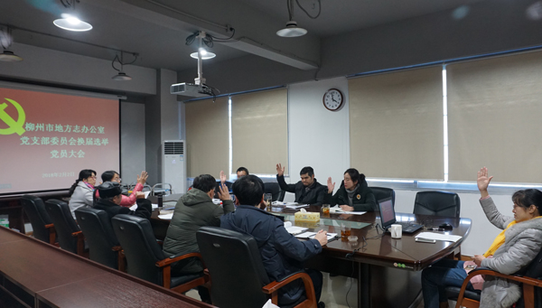 按照《中国共产党章程》、《中国共产党基层组织选举工作暂行条例》要求,市方志办党支部于2018年2月2 日下午召开全体党员大会,对支部委员会进行换届选举。支部有党员11名,9名党员参加会议,2名党员请假。会议共有5项议程:一是宣读市直机关工委批复文件;二是由凌琳同志代表上届党支部委员会作工作报告;三是表决通过换届选举办法,通过监票人名单;四是进行选举。通过大会选举,市方志办支部委员会由钱玉洲、黎静、熊春云3名同志组成。当日,支部委员会召开第一次会议。(文/综合科 图/刘燕)