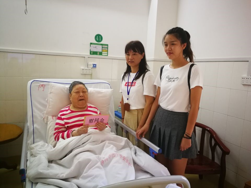 曾奶奶今年90岁,现在红十字会医院疗养,是一位拥有70年党龄的老党员。志愿者们在病房中与曾奶奶促膝而谈,详细询问老人的日常生活、身体健康等情况,并向曾奶奶赠送了慰问金。(文刘媛)