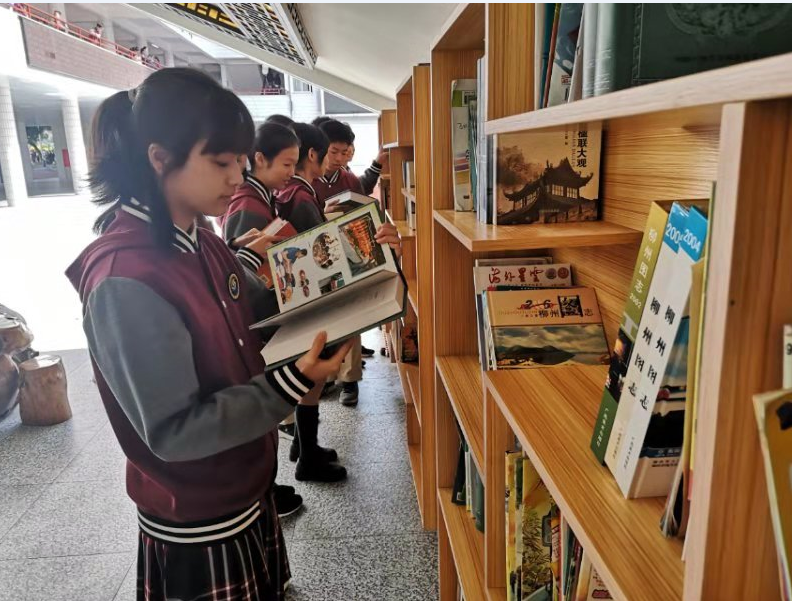 图为中学生在读书角翻阅地方志书 (黄志坚 摄)
