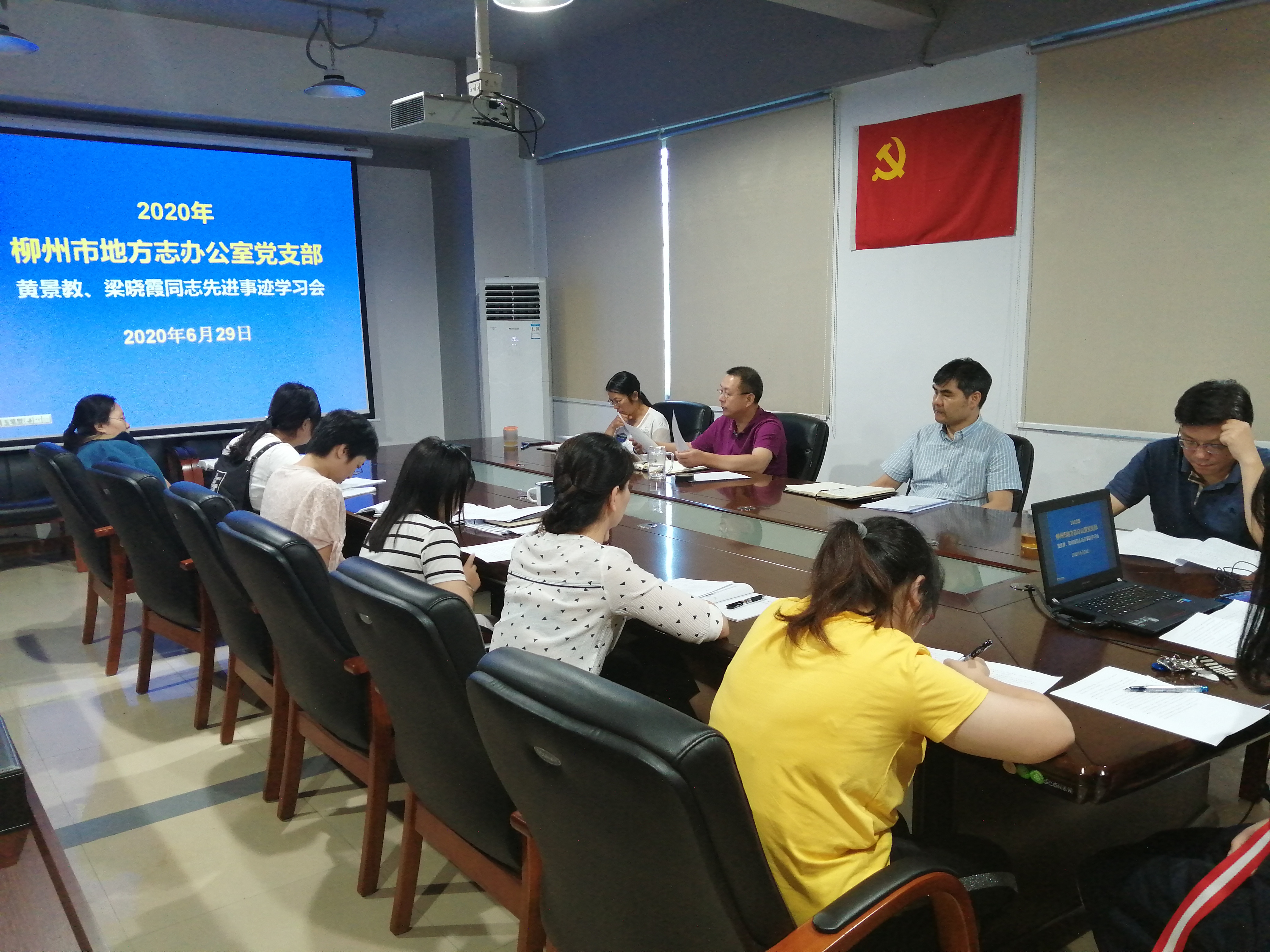 2020年6月29日上午,市地方志办党支部组织全体党员和先进青年,集中学习了自治区优秀共产党员黄景教同志、自治区先进工作者梁小霞同志的先进事迹。