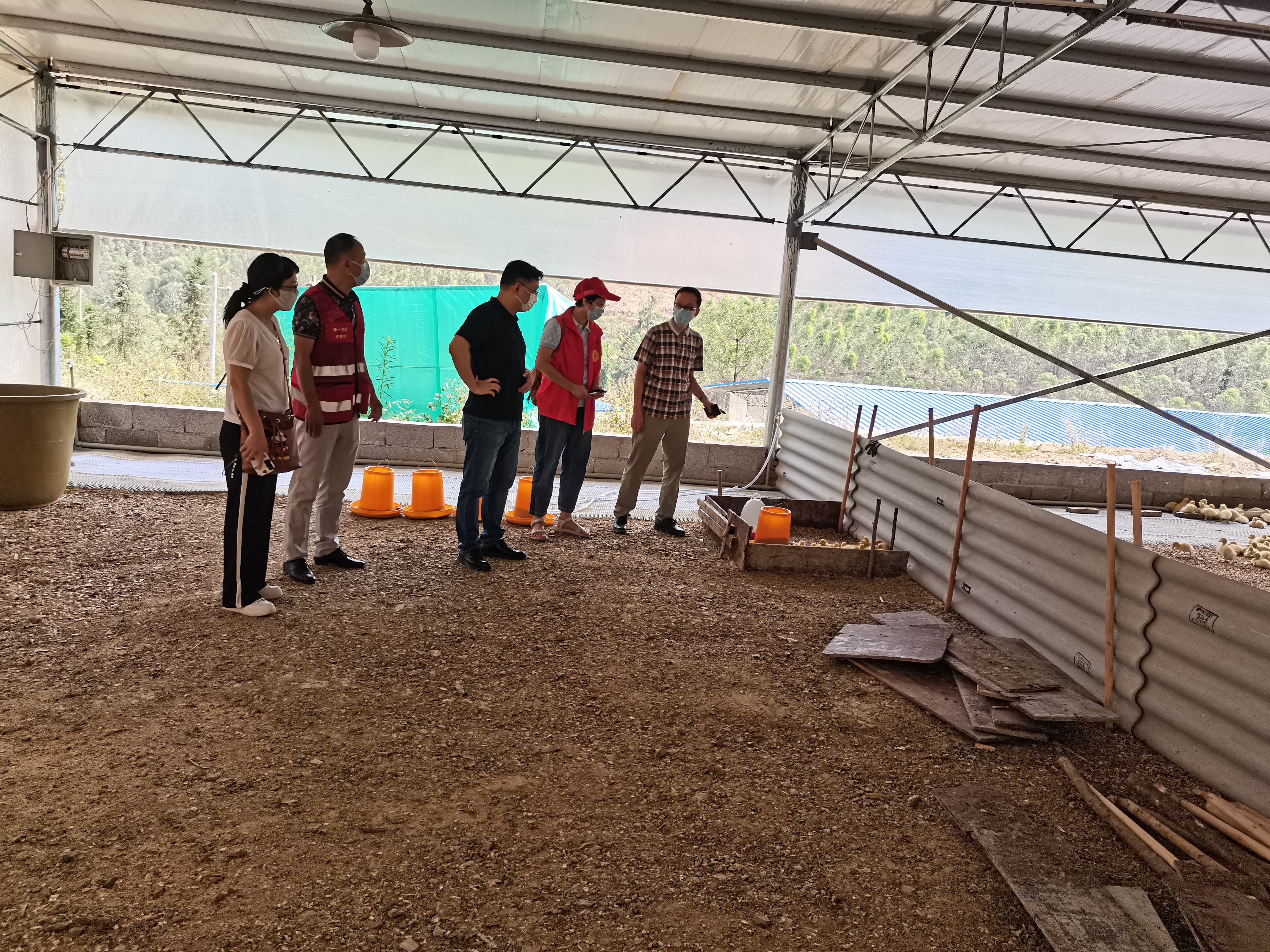 座谈结束后,全体人员到村办养鸭场进行了调研。目前养鸭场承包给广西实龙公司,现已投养种鸭苗7000只,预计半年后能产蛋产生收益。养鸭场既提高了高兴村集体收入,同时吸纳脱贫户参与企业工作,带动了脱贫户就业。