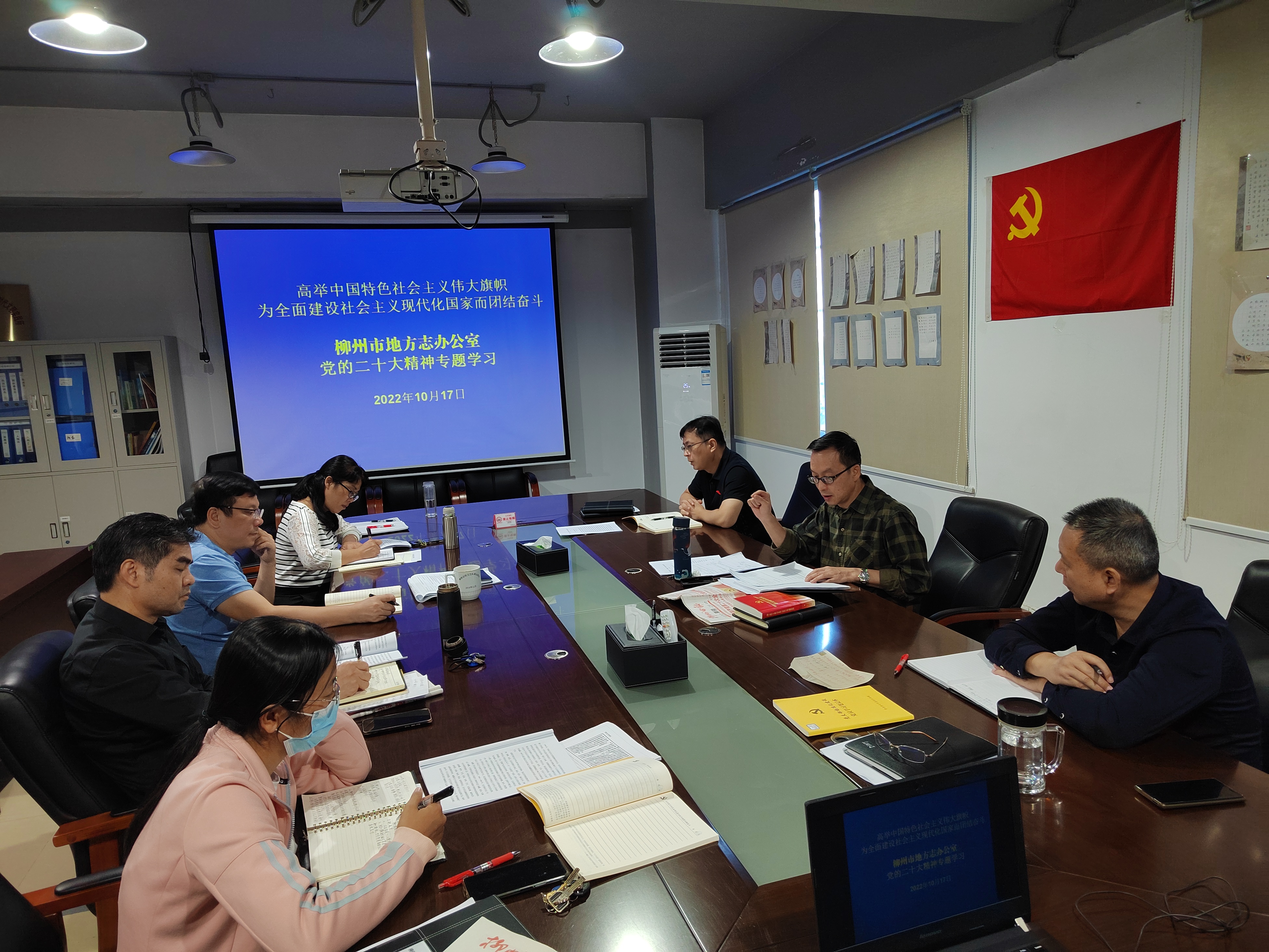 党组书记何志忠强调:党的二十大是我们党进入全面建成社会主义现代化国家、向第二个百年奋斗目标进军新征程的重要时刻召开的一次十分重要的大会,是全党全国各族人民政治生活中的一件大事。当前和今后一个时期,深入学习党的二十大特别是习近平总书记所作报告精神是本办的首要政治任务。我们要紧密团结在以习近平同志为核心的党中央周围,紧紧围绕党的二十大提出的奋斗目标和主要任务,认真学习、深刻领会报告精神,把学习成效转化为做好地方志工作的内在动力,鼓足干劲,凝心聚力推动柳州地方志事业高质量发展。(市地方办)
