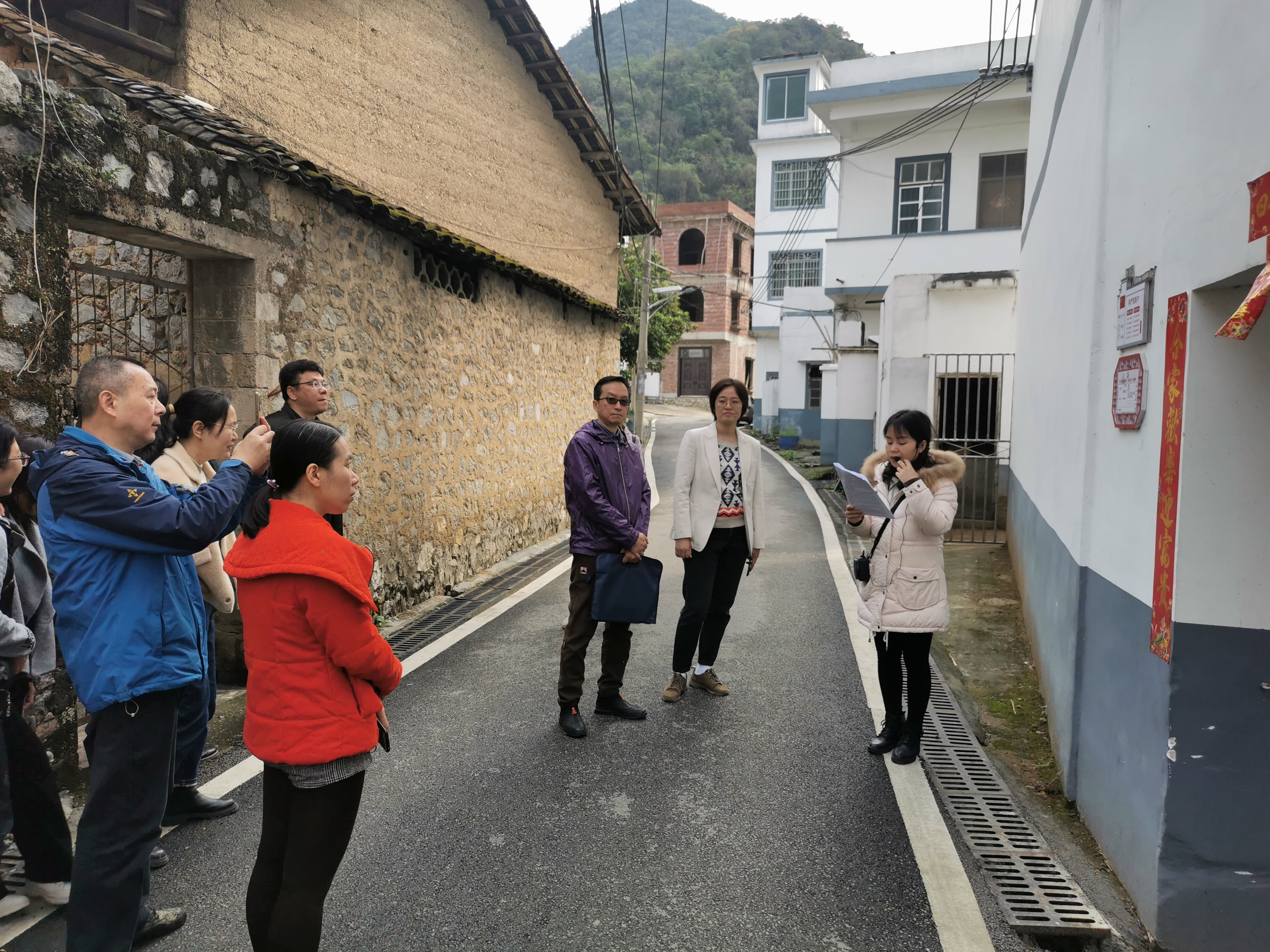 在洛满镇福塘村沙江屯调研基层党建,党员户门口悬挂着“沙江屯党群共建‘门前三包’责任牌”。(吴思雯摄)