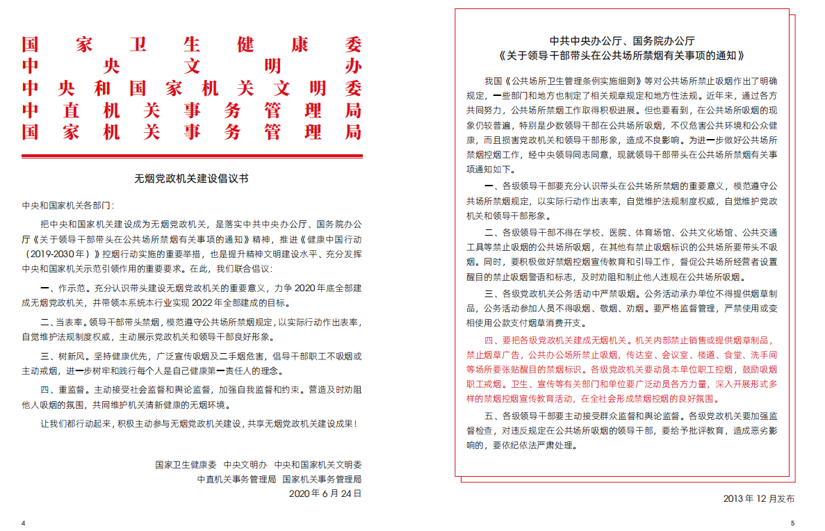 无烟党政机关倡议书