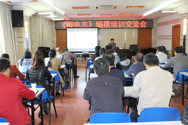 2015年11月4日下午,在柳州发电有限责任公司培训中心,市方志办对30多名《广西柳州发电有限责任公司志(1986~2015)》修志人员进行业务培训。