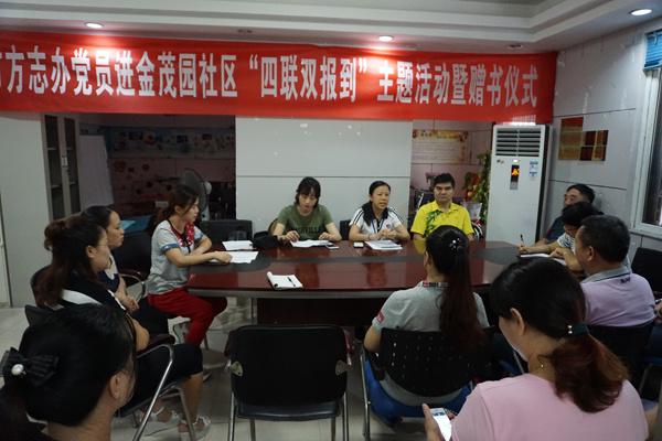8月2日,市方志办党支部7名在职党员到结对社区——柳北区胜利街道金茂园社区开展“四联双报到”主题活动。