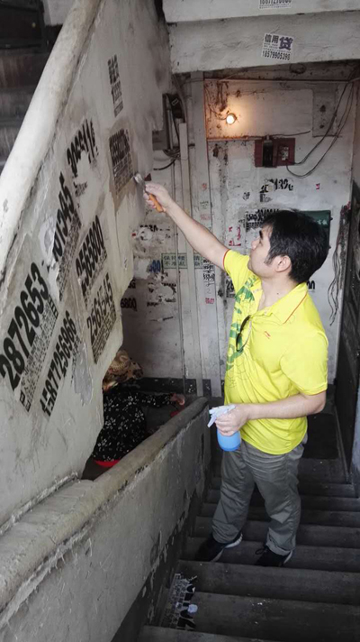 市方志办在职党员在刮除小广告