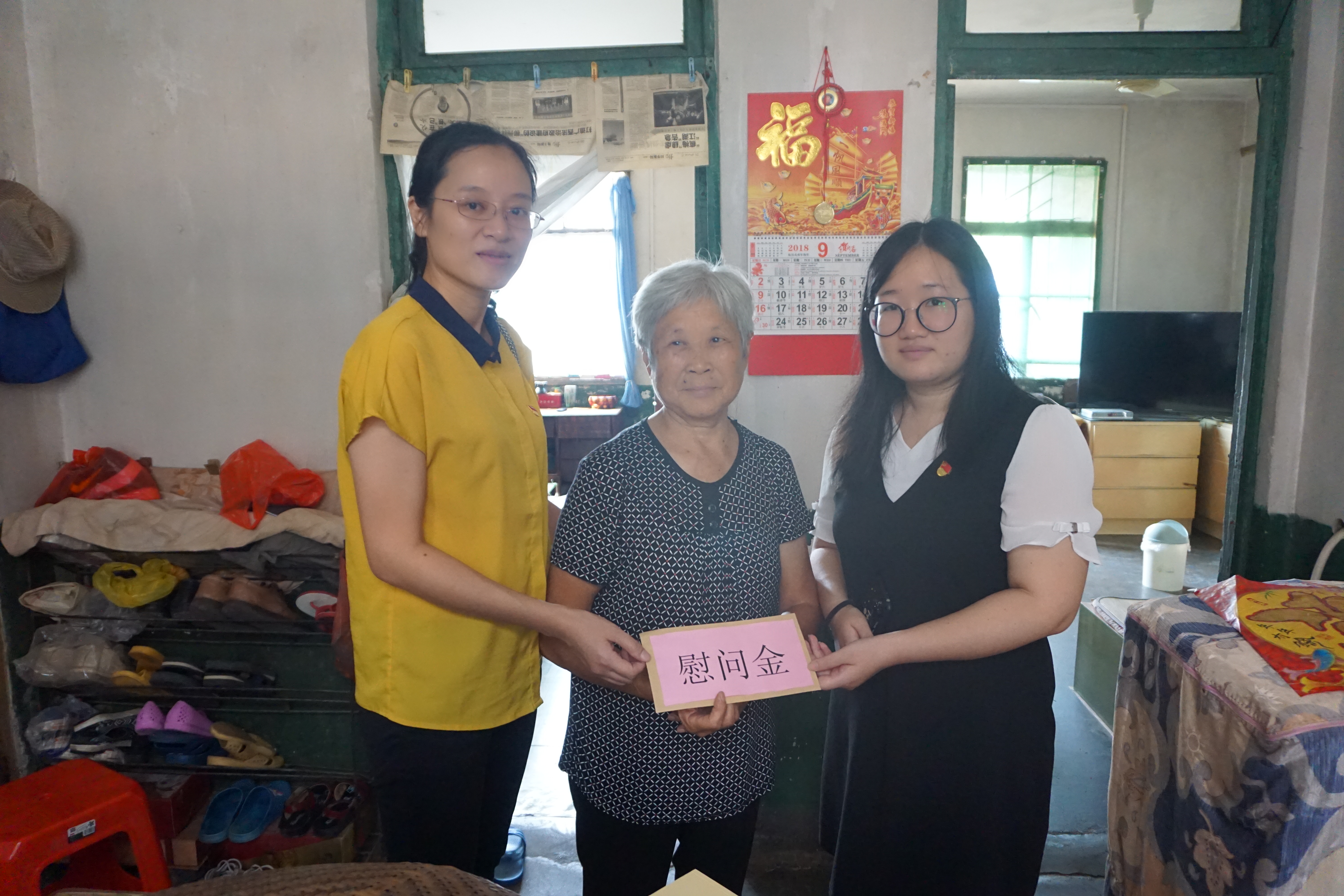图为在80岁的方秀琴家中慰问。