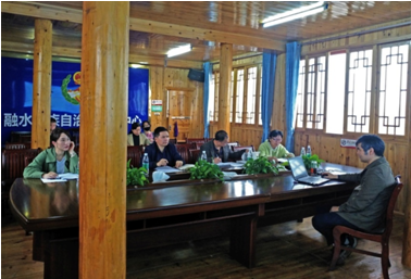 与融水史志办编纂人员交流 (杨莉 摄)