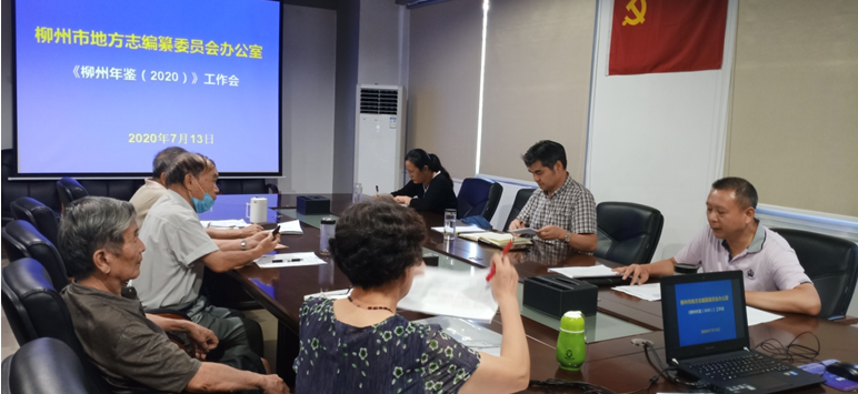 2020年7月13日下午,柳州市地方志编纂委员会办公室在资料室召开《柳州年鉴(2020)》编纂工作会议,副主任钱玉洲主持会议。柳州年鉴编辑部汇报了书稿编纂情况,主任罗方贵就解决编纂中出现的共性问题提出指导意见。