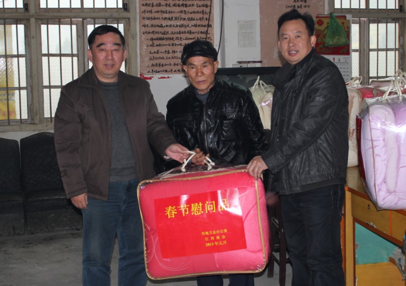 2013年1月24日,本办扶贫工作分管领导宋华、江西商会副会长刘兆滨等一行6人到定点扶贫村--柳江县土博镇屯兵村开展慰问活动,慰问村委干部、困难党员和五保户共15人,并赠送慰问品一批。