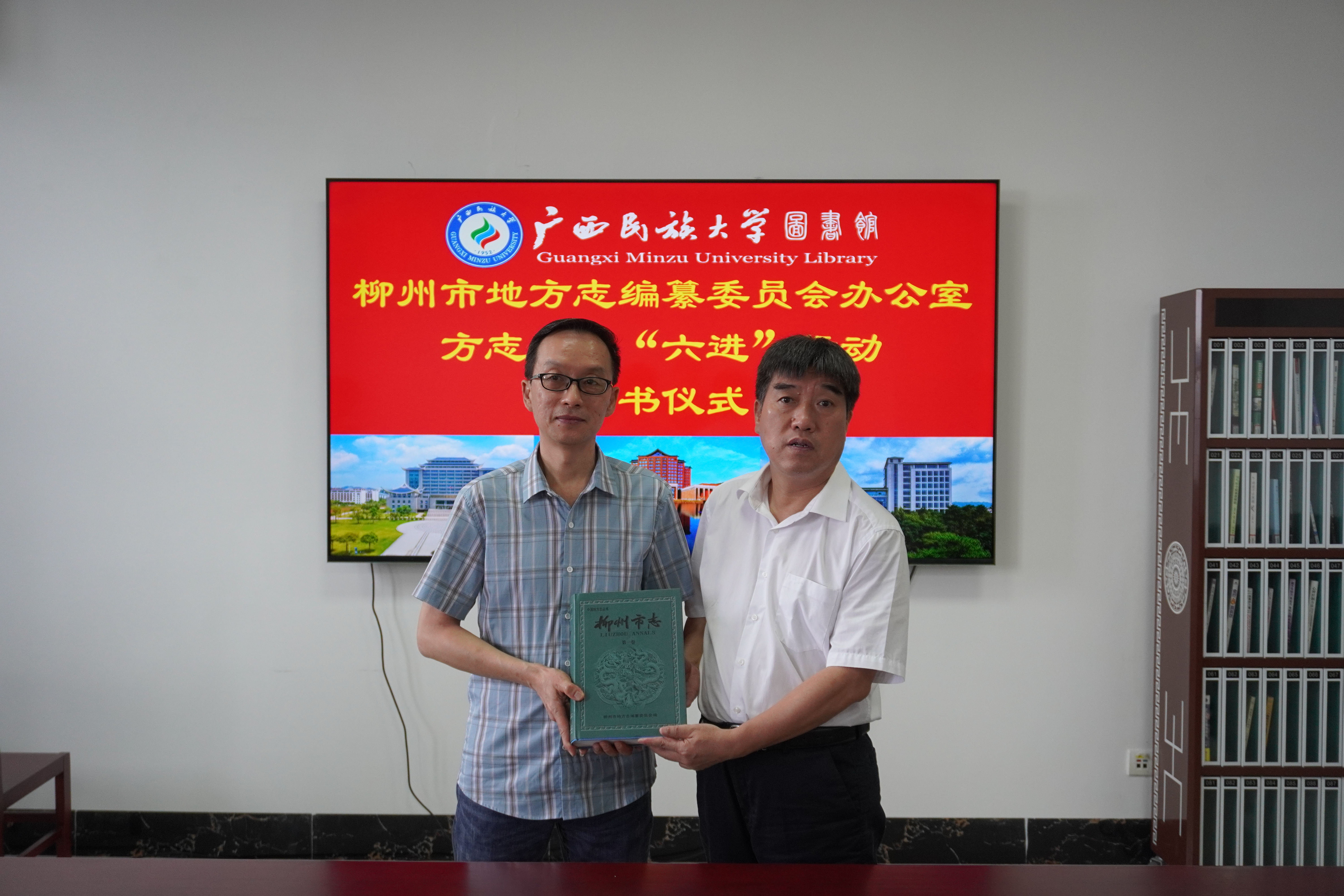 今年6月,柳州市地方志办公室在了解到广西民族大学筹建地方志主题书库的意向后,积极响应,向该校图书馆捐赠《柳州市志》、历年《柳州年鉴》和各类地情书15种33册。