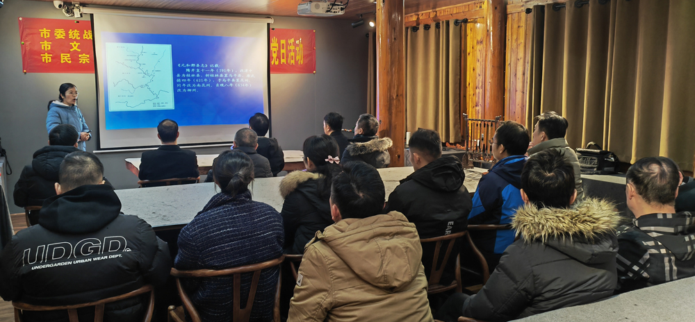 1月26日下午,市委统战部党总支、市文联党支部、市民宗委党支部组织党员在驾鹤书院联合开展“‘艺’心永向党 同心迎新春”主题党日活动。市地方志办公室业务骨干应邀到场为机关党员干部讲述驾鹤书院及其周边的历史文化。