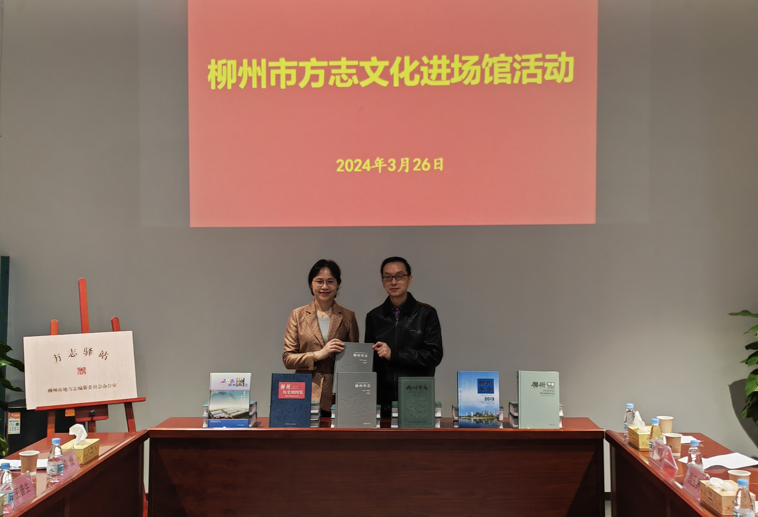 当天,市地方志办公室与柳州军事博物园的党员干部就如何讲好柳州故事,宣传好柳州历史文化进行座谈交流,并在该园建立方志驿站。何志忠主任代表市地方志办公室向柳州军事博物园赠送《柳州市志》《柳州年鉴》《柳州石刻释要》等地方志书籍一批。今后,市地方志办公室将依托柳州军事博物园方志驿站长期集中展陈地方志书籍,供游客和市民阅读。同时,每年将新编辑出版的书籍送至方志驿站,形成常态化合作机制,为提升柳州军事博物园的历史文化底蕴、推动文旅产业融合发展贡献方志力量。