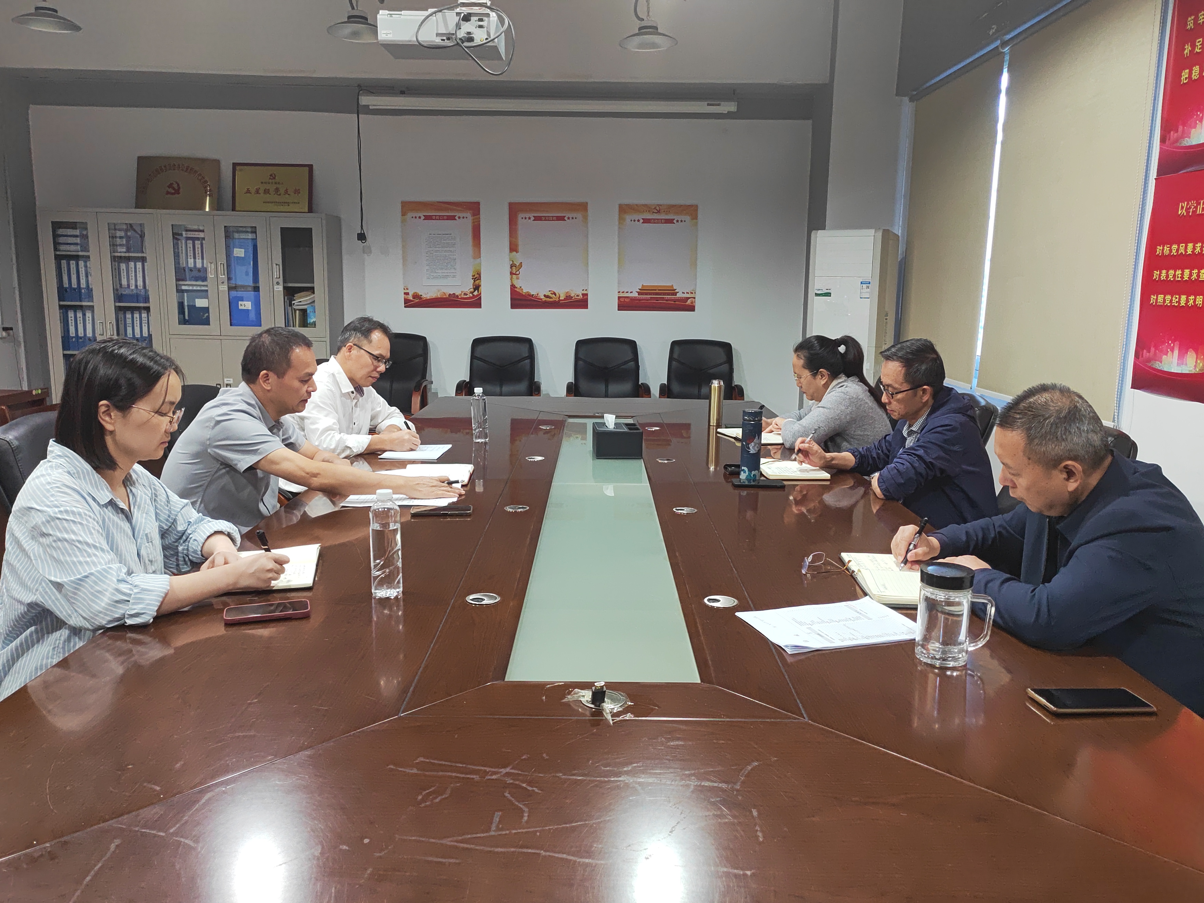 11月5日,鹿寨县史志办主任梁承刚一行3人到柳州市地方志办汇报鹿寨县近期年鉴工作开展情况(马川容 摄)