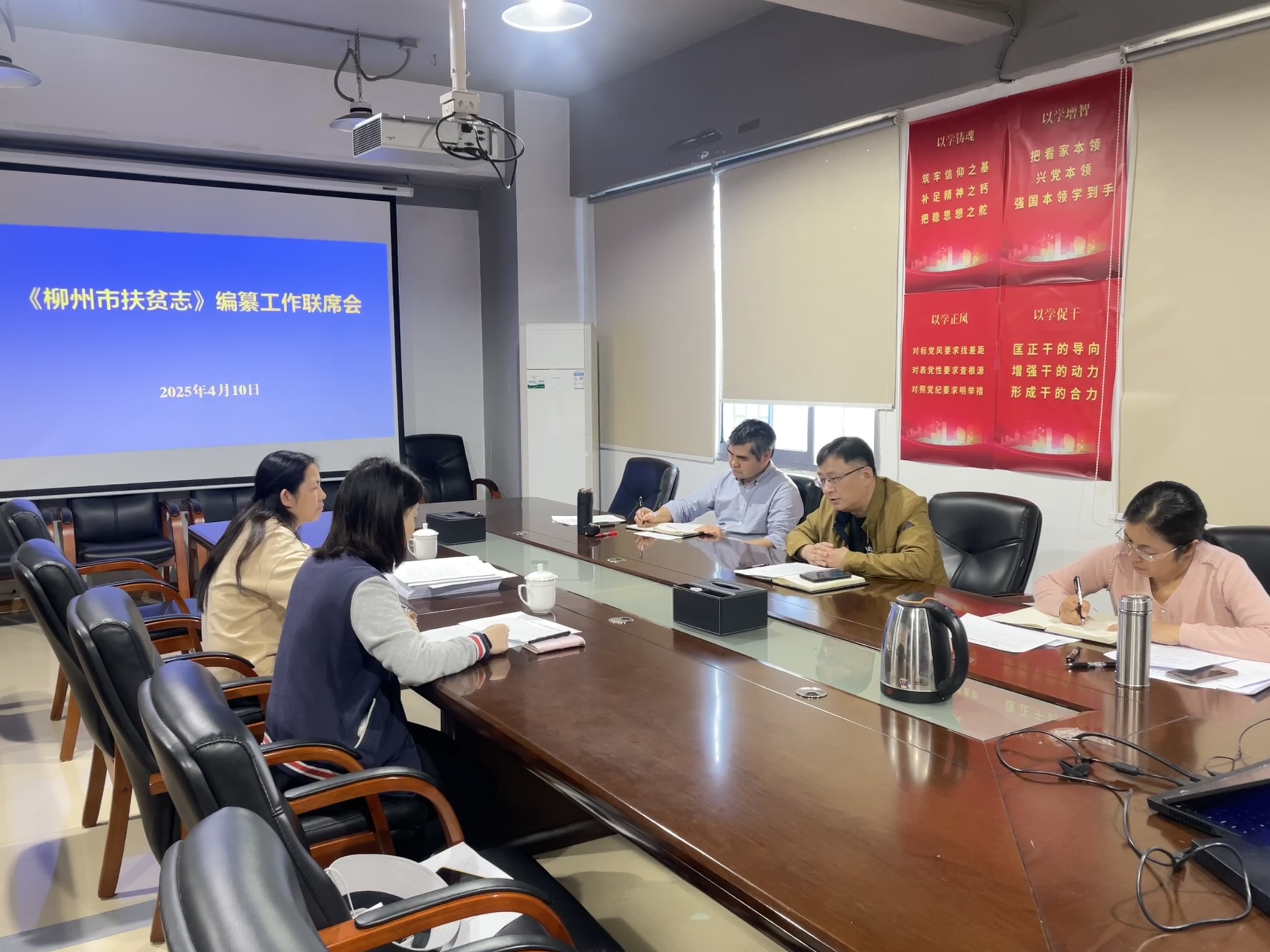 4月10日下午,2025年《柳州市扶贫志》第一次联席工作会议在市地方志办会议室召开,市地方志办、市农业农村局分管领导和相关科室人员一同参会。