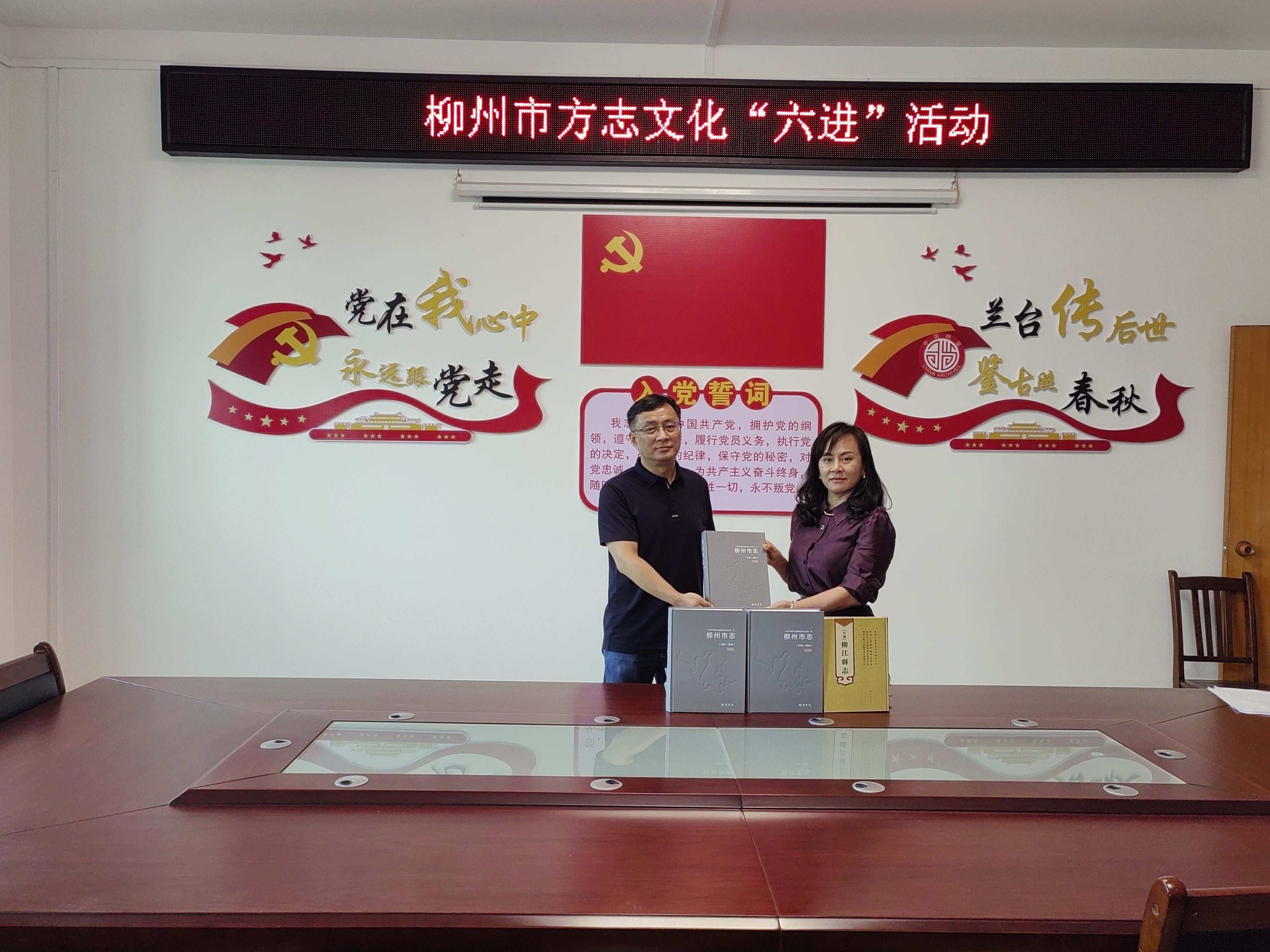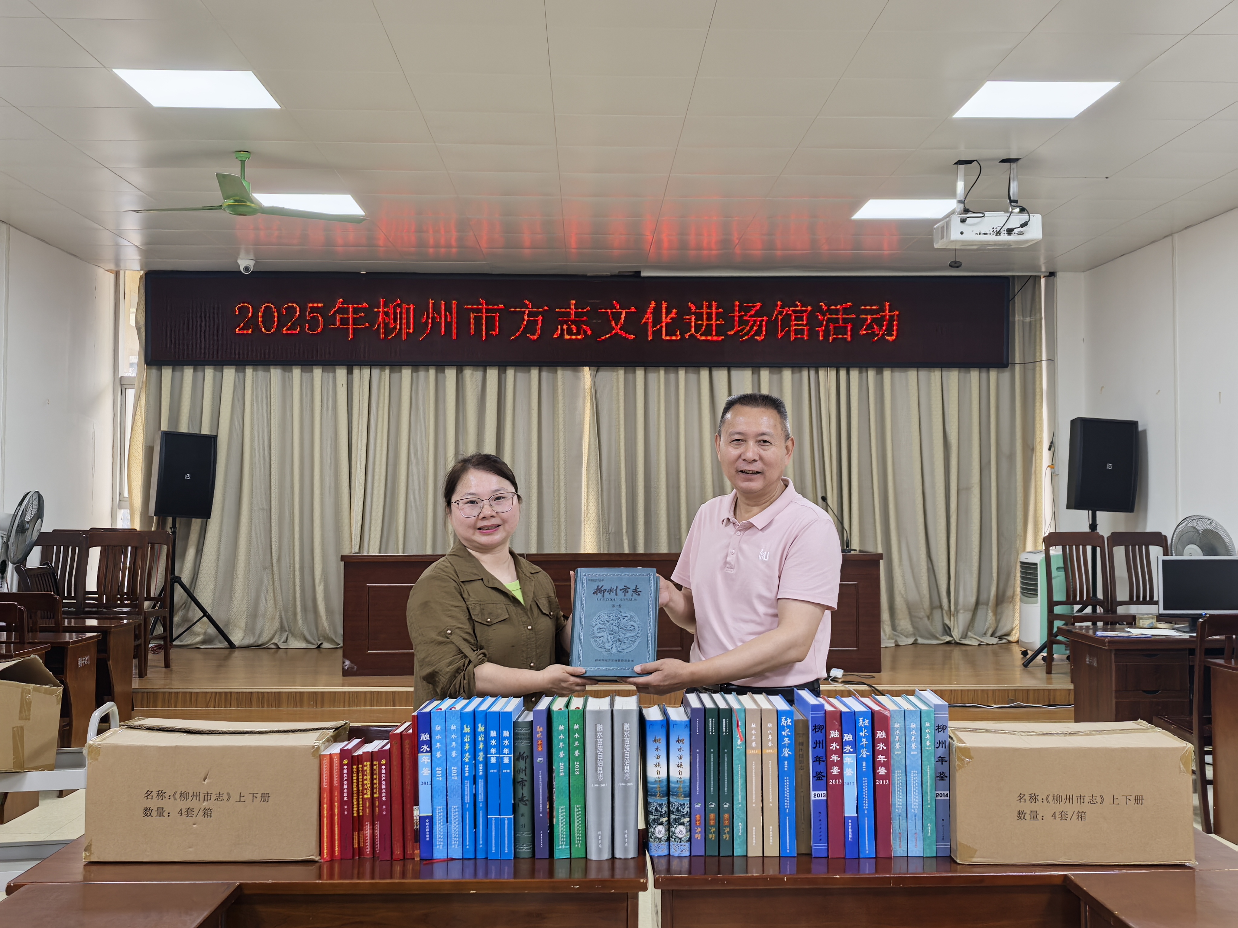 5月20日,市地方志办在柳江区开展方志文化“六进”活动,向柳江区档案馆、柳江区图书馆赠送书籍。(柳江区地方志办供图)