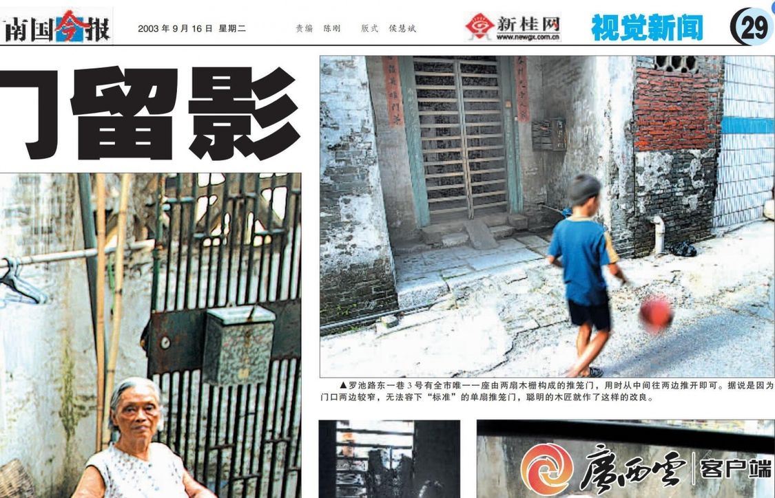 南国今报2003年9月16日曾专题报道柳州的推笼门,右上图就是当年罗池路东一巷3号的样貌。