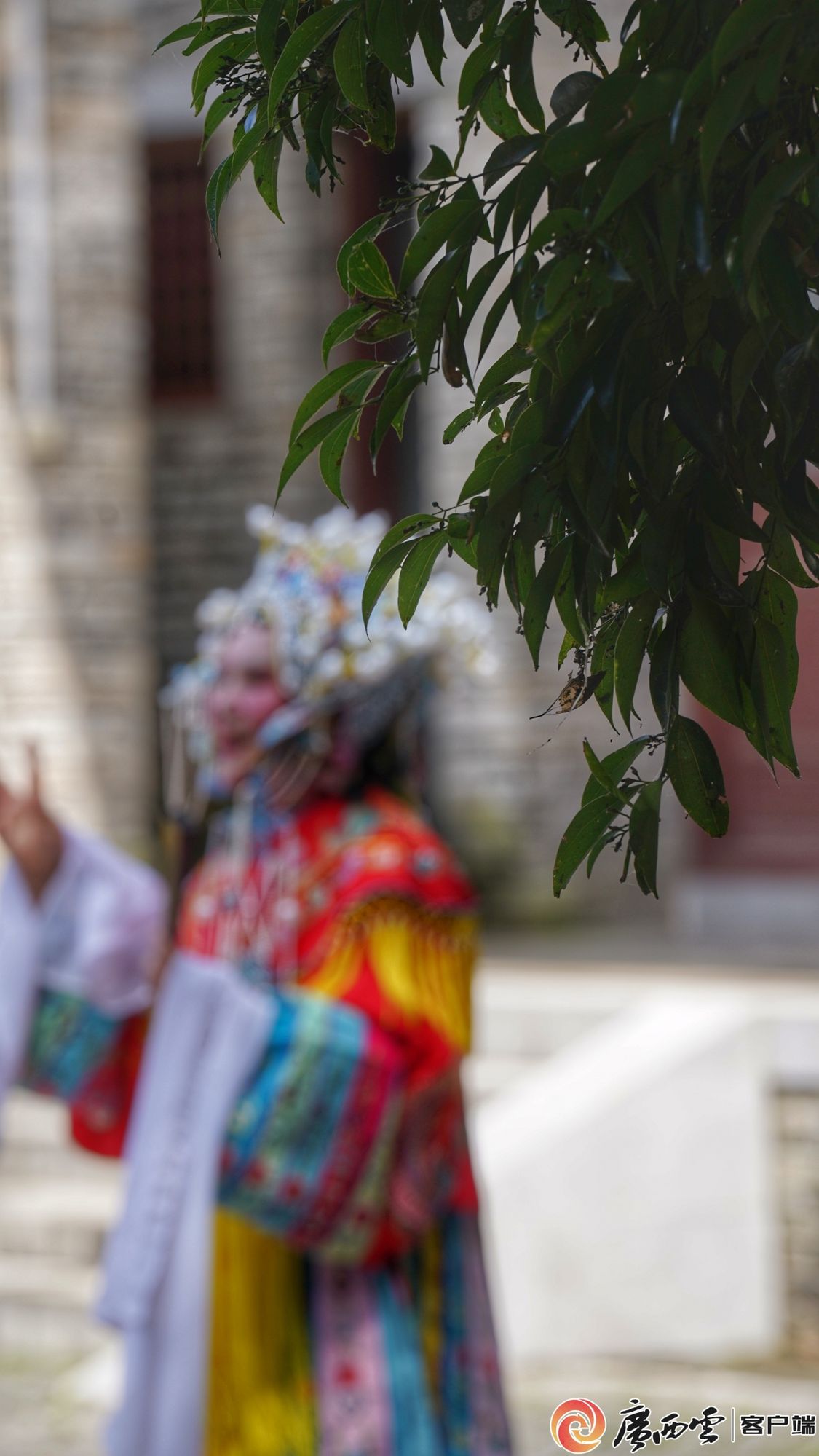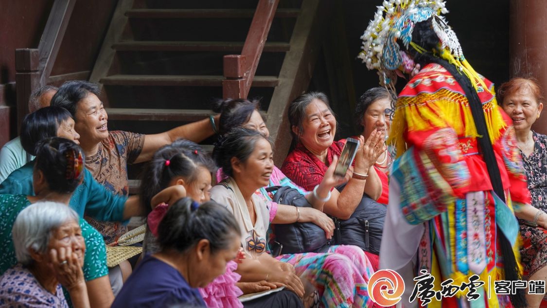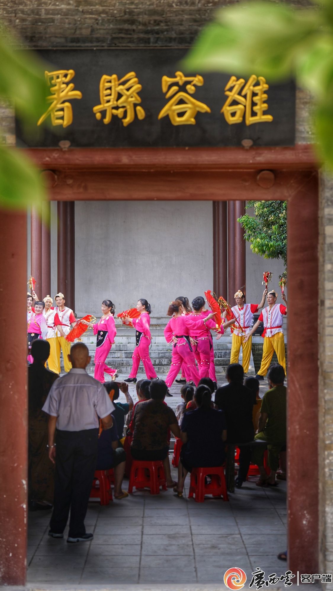 老县署内,观众如痴如醉,彩调桂剧演员们粉墨登场,演出《刘三姐》《王三打鸟》选段,场内笙歌婉转,绕梁不绝;飘出场外的曲调如丝如绸,充溢码头街、雷庙街、南门街、塘背街。记者 唐绍怡 摄