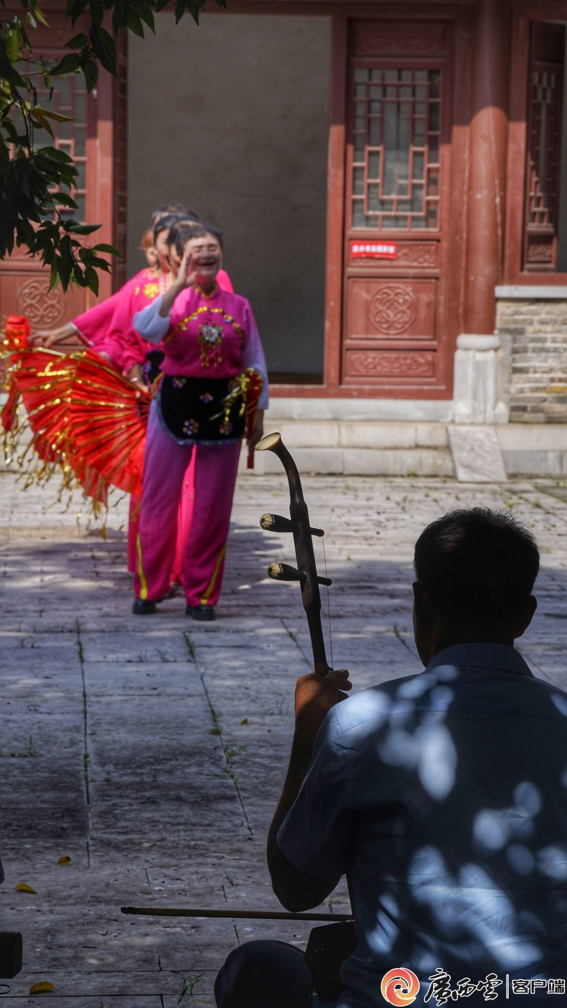 雒容当地文艺团体在老县署内,向居民进行经典彩调桂剧剧目的公益演出。记者 唐绍怡 摄