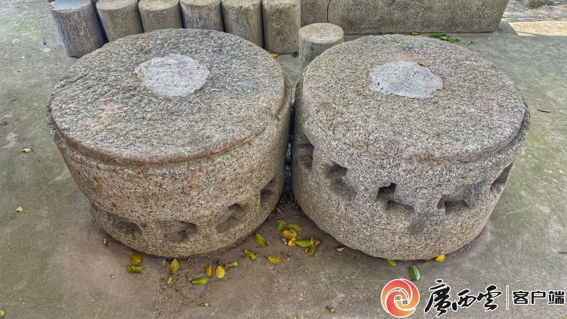 雒容古码头,徐霞客游历柳州上岸处。摆放着两尊古时榨糖的石碾。记者 唐绍怡 摄