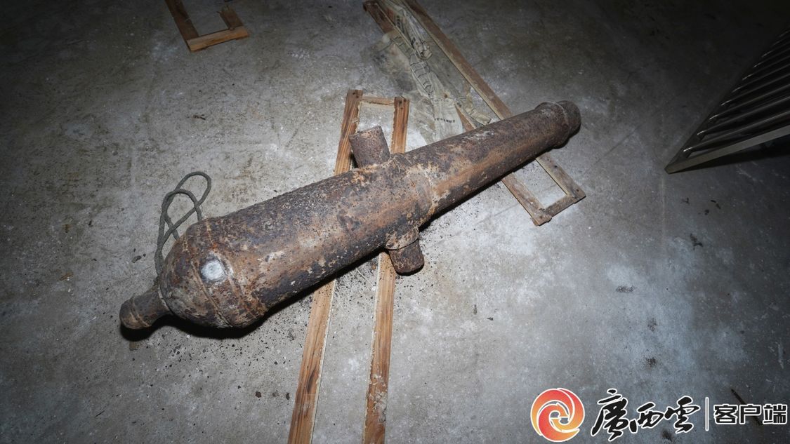 图为鹿寨县博物馆馆藏的,从洛清江打捞出的三尊铸铁火炮之一。记者 唐绍怡 摄